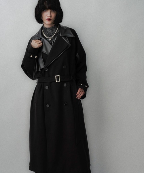 HARE トレンチコート Sサイズ 黒 ダブルカラートレンチコート(HARE)(トレンチコート)|HARE